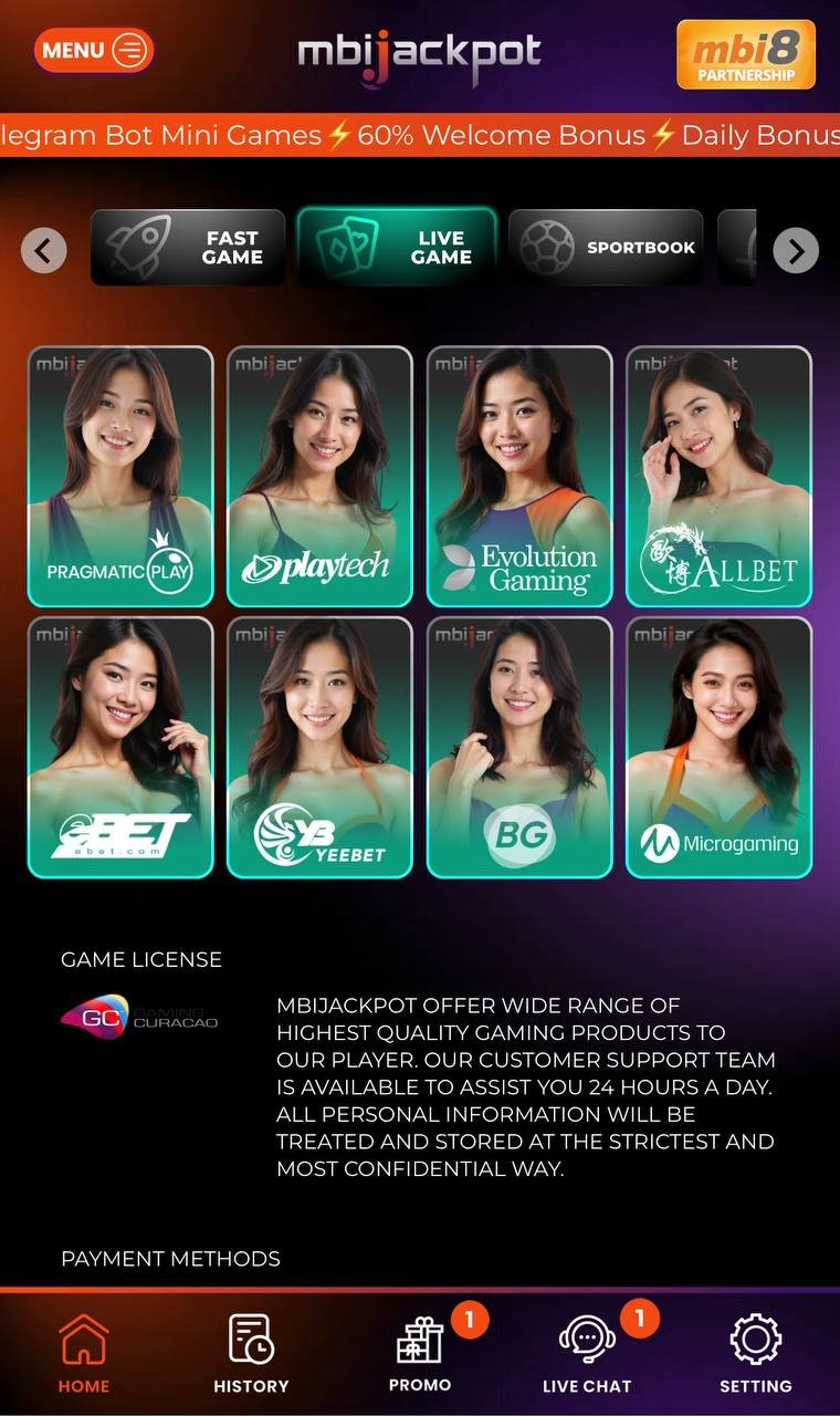 In truth, MBIJACKPOT is a real and legal online casino in Malaysia. The best suppliers power all Live Casino games, and Random Number Generator (RNG) technology make sure that the games are fair. The live dealers are all well-trained, and the site employs SSL encryption to keep your personal and financial information safe.